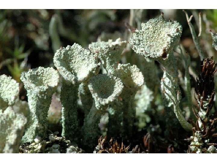 SPECIFICITES des Lichens • Colonisateur de supports, pionniers de la végétation • Capables de vivre dans des situations extrêmes • Capables de reviviscence • Indicateurs de pollution • Utilisés dans l’industrie du parfum 9000 T/an en 1950 (Evernia prunastri) • Nourriture - Animaux: Renne, Caribou (Cladonia rangiferma) - Homme: au Japon, Umbilicaria esculenta