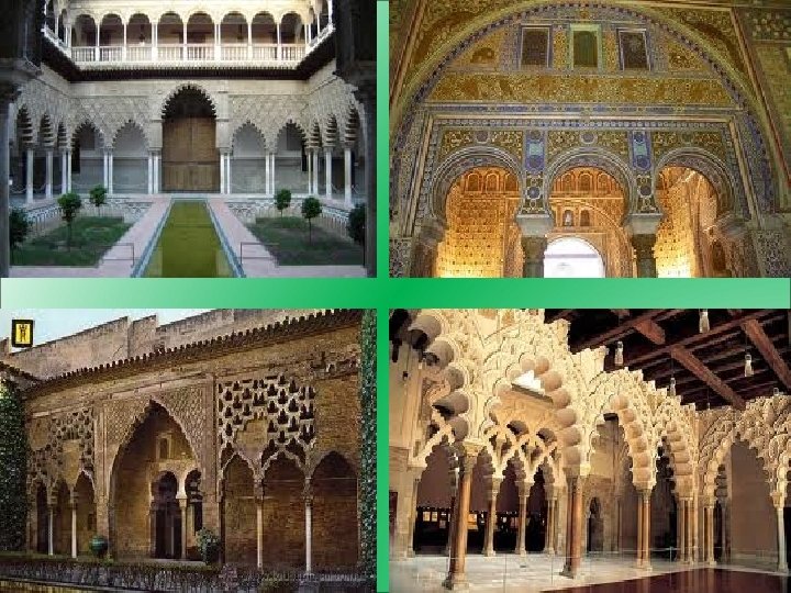 Les bâtiments mudéjares ont été construits après la Reconquête, et ce sont tous des exemples d'imposante magnificence et minuciosité du détail. Le Mudéjar peut être plus intense ou plus discret, dépendant des époques et des constructions. Par exemple, les Alcazars Royaux ("Reales Alcázares") de Séville, construits par le roi castillan Ferdinand III après la conquête de la ville, constituent un palais arabe à part entière.