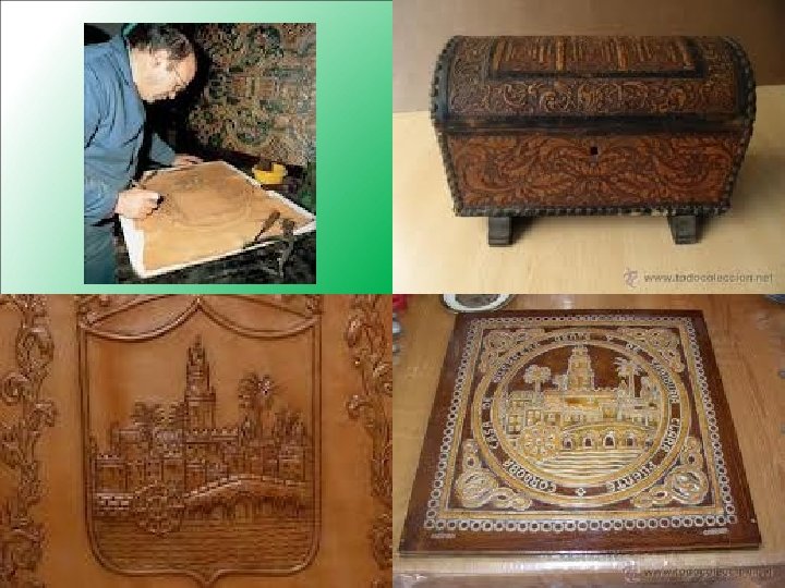 4. 3. - Le travail du bois incrusté: la "taracea". Importé d'Orient, le travail du bois incrusté a été, et est toujours, le blason doré de l'artisanat populaire andalou. À Grenade, épicentre de cet art appelé en espagnol "taracea", les artisans continuent de travailler dans leurs petits ateliers à la vue du public. Les planches de bois sont travaillées et polies, puis incrustées de différents types de bois précieux comme l'ébène, et d'ivoire. Le tout est ensuite lissé et couvert d'une couche de laque.
