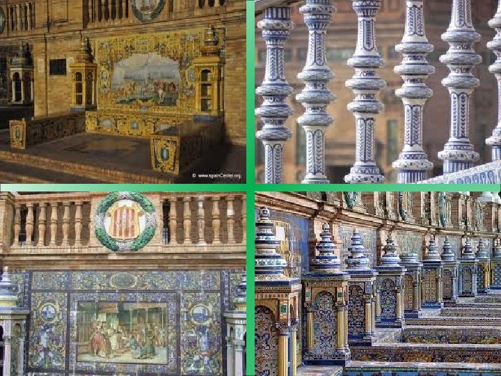 Un des exemples plus majestueux de l'usage de la faïence est la Place d'Espagne (Plaza de España), à Séville. Sans aucun doute la plus belle place de tout le pays.