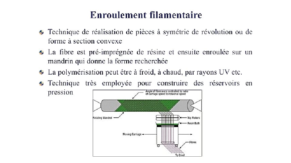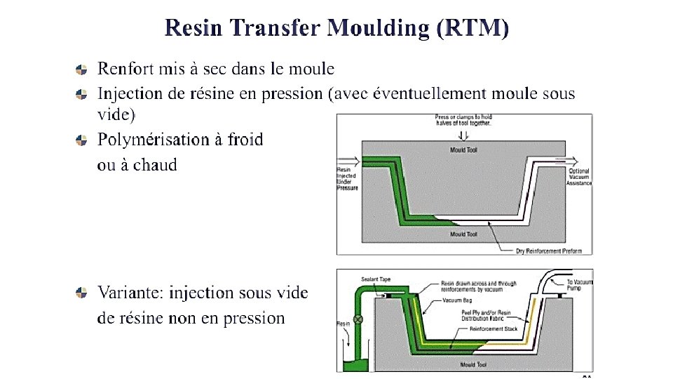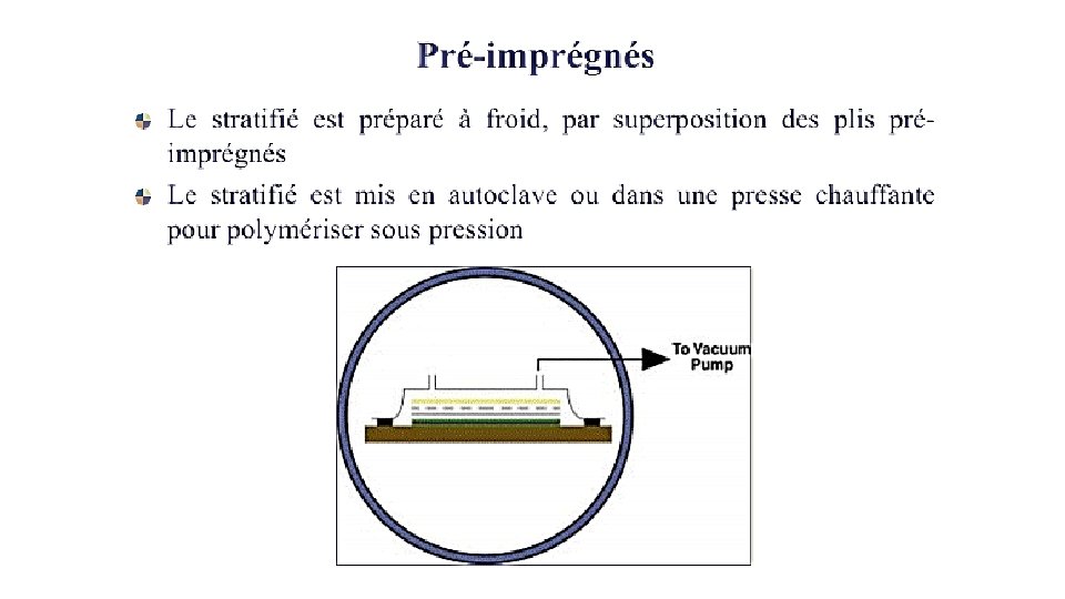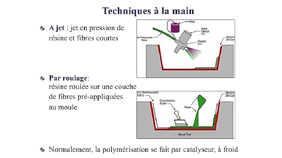 Technologies de production A la main Sous vide Resin Transfer Moulding Resin Film Infusion Pré-imprégnés (prepregs) Pultrusion Enroulement filamentaire (filament winding)