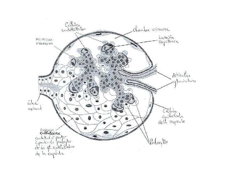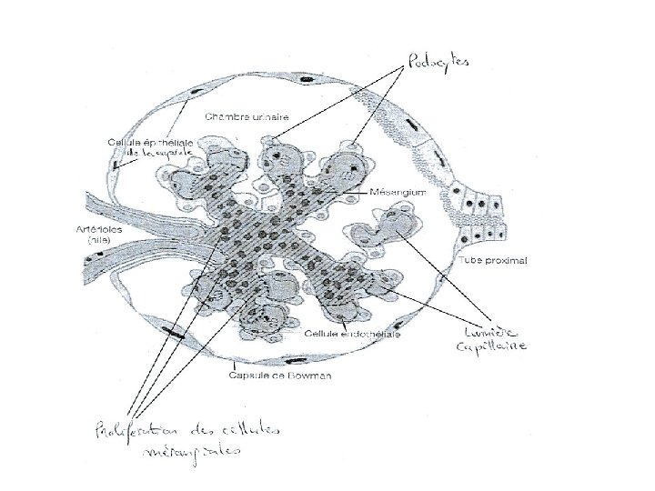 4. 4. La Glomérulonéphrite membranoproliférative (GNMP) • Une glomérulopathie rare caractérisée par une prolifération endocapillaire et des dépôts endomembraneux d’Ig. G, de C 3, de C 4 et de C 1 q. • Un syndrome néphrotique impur ou par un syndrome néphritique. • Aucun traitement étiopathogénique n’a fait la preuve de son efficacité.