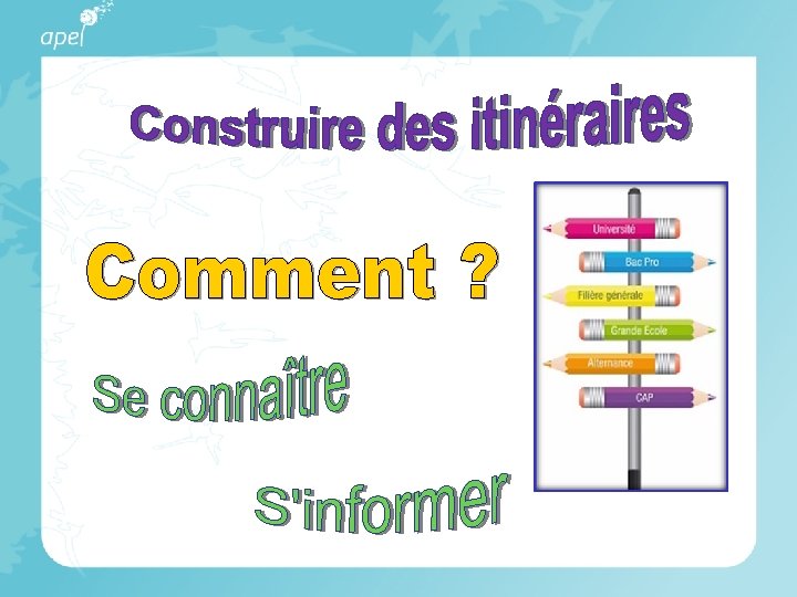 Voie Professionnelle J’apprends mieux en pratiquant ; j’ai un projet professionnel Voie Technologique Je préfère les approches par études de cas avant d’aller à la théorie Voie Générale Je suis à l’aise dans les approches théoriques 2 nde GT