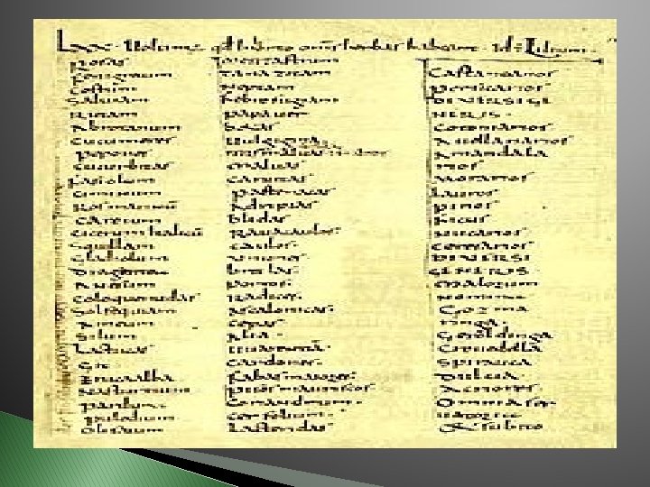 PLANTES CITEES DANS LE CAPITULAIRE 13 � � � 72 Plantes 16 arbres plantes textiles et tinctoriales � Médicinales: � Aurone � Guimauve � Mauve � Pavot � Bardane � Rue � Rose � Souci � Tanaisie � Joubarbe …