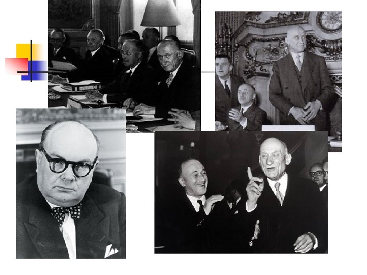D) Décision et opportunité n Coudenhove-Kalergi: a obtenu l’appui de grandes figures politiques. n Briand propose le lien fédéral européen après la réconciliation avec Stresemann. n Retinger la guerre permet de signer un accord sur une fédération européenne des pays danubiens. n L’aspiration des élites économiques à disposer d’un marché commun européen facilite la naissance de la CECA et surtout de la CEE en 1957. n Monnet saisir sa chance auprès des hommes de la IVe République. n Robert Schuman: le plan Monnet-Schuman du 9 mai 1950 est une excellente opportunité pour le MAE. n Adenauer a saisi immédiatement la chance que Schuman lui