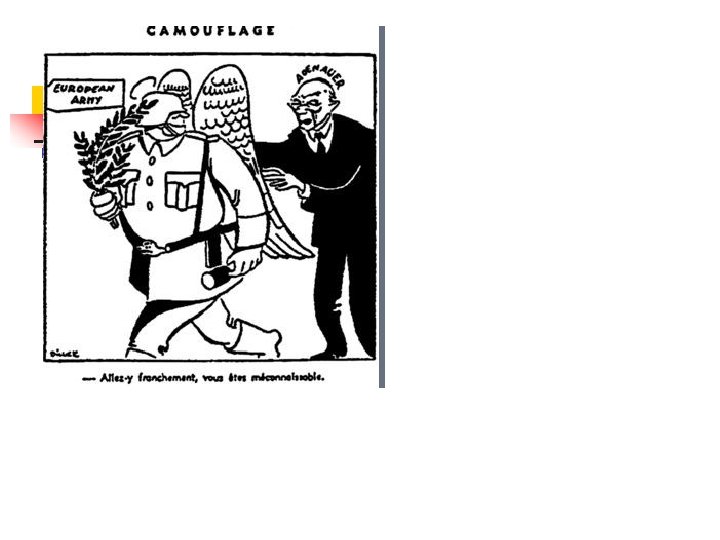 E) Des projets novateurs n n n Le mouvement Pan Europa de Coudenhove : inventer « une communauté de destin franco-allemande » à défaut « de solidarité d’amour » . Lien fédéral européen de Briand : créer une organisation politique et économique de nature fédérale ou confédérale. Le projet de Monnet du 9 mai (plan Schuman) fin de l’antagonisme historique franco-allemand, organisation supranationale (fédérale) pour le charbon et l’acier. n CED trop novateur? (voir diapo suivante) n Alexandre Marc et Denis de Rougemont, une alternative au marxisme et au capitalisme : le personnalisme n Contre l’Europe des nations, (voir diapo suivante)