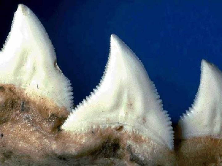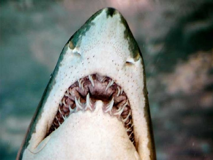 En ce qui concernent les mâchoires des requins, il est impossible d'en faire l’inventaire car chaque espèce possède une dentition spécifique. Mais, cependant certain points se valent pour tous les requins. Une dent de requin est très dure et brillante, elles sont recouvertes de vitrodentine, une substance presque entièrement minérale. Elles se logent dans la gencive et ne sont pas soudées à la mâchoire. Elles sont disposées en plusieurs rangées et se renouvellent en permanence, mais, pas uniquement quant elle est cassée. Quoi qu’il arrive, une fois arrivées à l’extrémité de la mâchoire, les dents tombent, poussées par la rangée suivante, on peut compter jusqu’à 3 000 dents, sur 6 à 20 rangées. Il peut en user jusqu’à 20 000 dents dans sa vie. Le cycle de renouvellement dépend des espèces. On sait par exemple que certains requins pélagiques renouvellent leurs dents tous les quinze jours. La mâchoire de la majorité des requins modernes est hyostylique c’est-à -dire indépendante du crâne. Cette caractéristique leur permet une spectaculaire extension des maxillaires donc d’attaquer de grosses proies et une préhension (pression de la mâchoire) d’une grande puissance. A titre d’exemple, un requin d'une longueur de 3 m possède une puissance de pression de 3 t /cm².