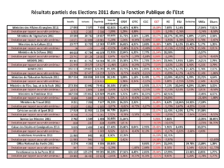 LES RESULTATS DES ELECTIONS PROFESSIONNELLES réunion du lundi 7 novembre 2011