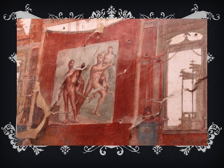 4. LA PEINTURE v Influence…grecque. v Plusieurs oeuvres nous sont parvenues grâce aux fouilles de Pompéi, Herculanum et de. . . Rome (maison de Livie). v Peintures murales des maisons des riches citoyens (patriciens) v Scènes de la vie religieuse (divinités, scènes de sacrifice), d’épopées comme l’Iliade et l’Odyssée d’Homère, scènes de la vie quotidienne, paysages. . .