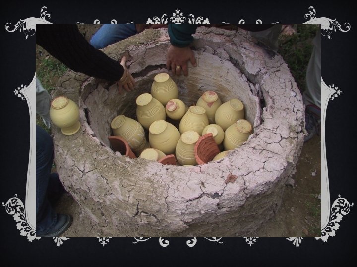 6. CERAMIQUE v faite d’argile cuite au four v servait à différents usages : contenir des liquides (eau, vin, huile, parfum), des céréales; v parties d’une poterie : v • • • embouchure col anses panse pied