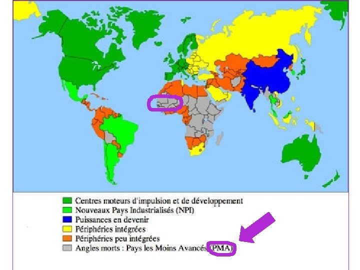 Conclusion / Mise en perspective : les Etats les plus pauvres (40 PMA dans le monde, 700 millions de personnes, 12% de la population) possèdent Des caractéristiques communes : Déficit de pauvreté développement marginalisation économique Mais aaussi problèmes politiques Inégalités socio spatiales (à différentes échelles : S/N mais aussi S/S Perspectives de développement : nombreux atouts = Défis