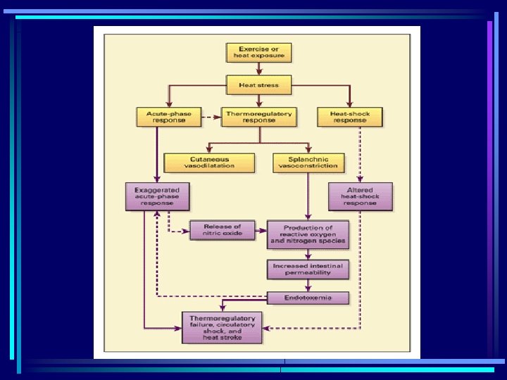 Fisiopatología ü Desnaturalización de las proteinas y enzimas ü Alteración de los fosfolípidos de las membranas (permeabilidad) ü Lisis mitocondrial con metabolismo anaerobio y acidosis metabólica (+ shock circulatorio) ü Liberación de citokinas y FNT ü Aumento de la producción de ON
