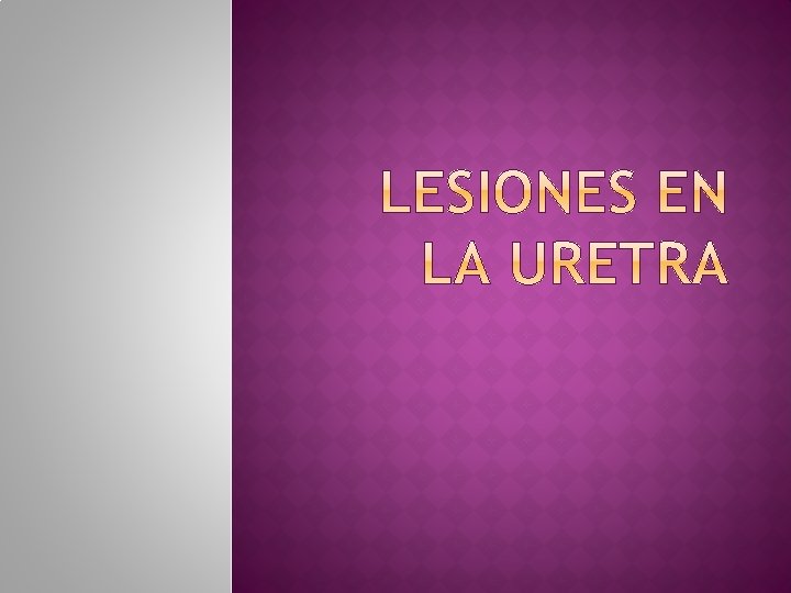 � Poco frecuentes � Mas común en los hombres � Acompañadas de fracturas en la pelvis � Caídas en posición a horcajadas Posterior • Prostática • Membranosa Anterior • Bulbar • Peneana