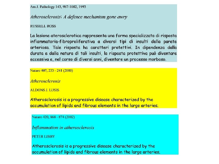 EVIDENZE DEL RUOLO DI ALTERAZIONI LIPIDICHE (DELLA COLESTEROLEMIA) NELLA PATOGENESI DELL’ATEROSCLEROSI • • • CARATTERISTICHE DELLA PLACCA STUDIO DI PAZIENTI CON IPERCOLESTEROLEMIA FAMIGLIARE EFFETTO DI DIETE RICCHE DI COLESTEROLO IN PRIMATI E CONIGLI WATANABE HERITABLE HYPERLIPIDEMIC RABBITS (WHHL rabbits) TOPI CON INATTIVAZIONE GENICA DI APOE (Apoproteina) o RECETTORE PER LDL (LDL-R).