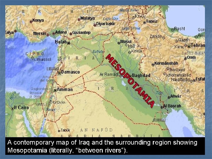 Mesopotamia n n “Land between the Rivers” Mesopotamia located between the Tigris River and the Euphrates River ***1 st Civilization***