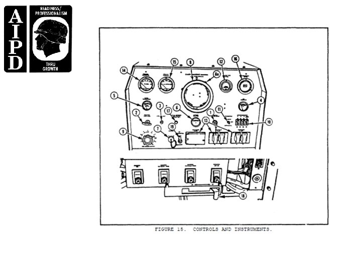 (2) Operation. (a) IGNITION Switch (1)(figure 15 on the following page). The diesel engine starter motor is actuated by this switch. The engine should not be cranked for more than 15 seconds continuously. If it is necessary to crank the engine more than one time, check the starter motor for temperature. Allow the starter motor to cool before energizing again. (b) THROTTLE (2). This control varies the engine speed. When the throttle is fully pushed in, the engine operates at an idle, and when the throttle is fully pulled out, the engine runs at an operating speed of 1800 rpm (revolutions per minute). The throttle may be locked in any position by twisting 1/4 turn clockwise. To unlock, twist counterclockwise