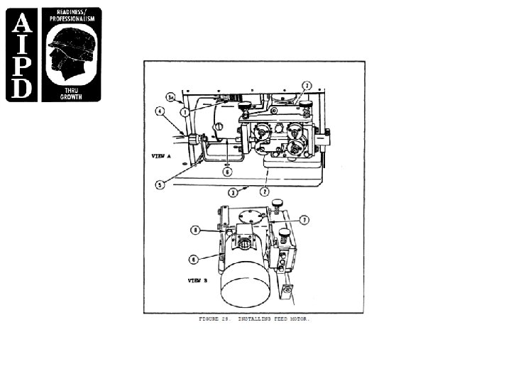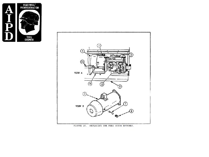 Step 3. Remove the wire guide (4) from the bracket (5). Step 4. Slide the feed motor (6)(figure 29, view A, on the following page) and gear reduction unit (7) out of the cover (3 a). Step 5. Remove the two bolts and lockwashers (8) (figure 29, view B), attaching the feed motor (6) to the gear reduction unit (7), and remove the feed motor (6). Step 6. Procure a new motor and install in the reverse order of removal