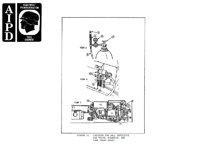Step 4. Check for loose or broken electrical wires to the gas valve solenoid (9)(figure 31, view B, on the previous page) and to the time delay relay (10)(figure 31, view C). Clean and tighten all loose electrical wires and repair or replace all broken electrical wires. Refer to FM 55 -605 -1 for the repair of electrical wires and cables to electrical/electronic equipment. Step 5. Listen for the gas solenoid to activate after time delay. If the gas solenoid or the time delay relay is defective, replace as follows