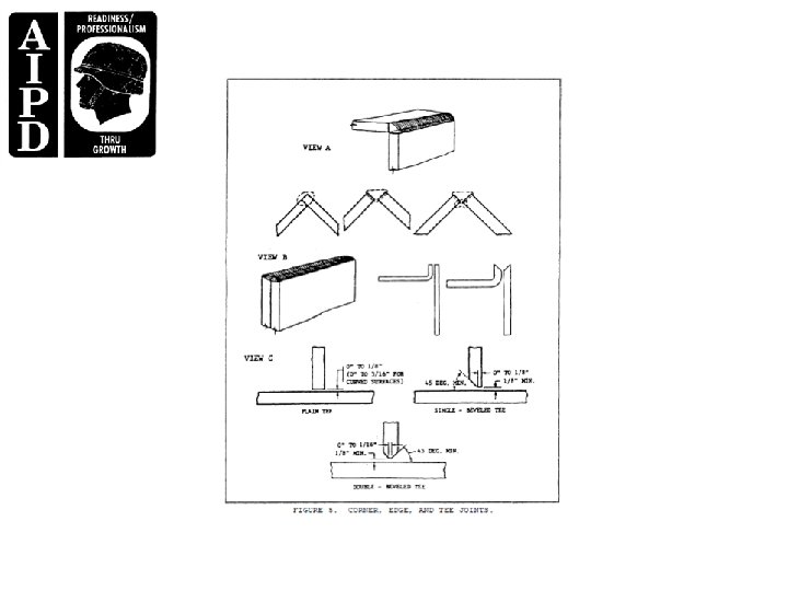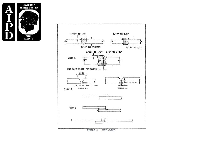 (3) Square Butt Joint (figure 4, view A, on the following page). The square butt joint is the easiest to prepare and can be welded with or without filler metal depending on the thickness of the base metal being welded. Joint fitup for this type joint should always be true enough to assure i 00 percent penetration with good fusion. When welding light gage material without adding filler metal, extreme care should be taken to avoid low spots and burn through. The heavier thickness will generally require filler metal to provide adequate reinforcement.