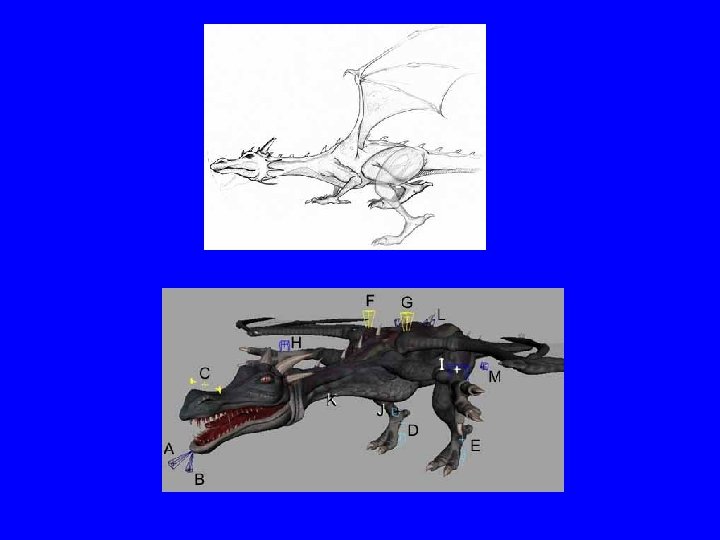 Character Design • After story come characters • Consists mostly of drawings, or sculptures – body poses – facial expressions – key features from multiple points of view • Note the lack of computers at this stage!