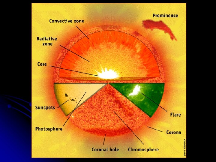 Photosphere l The Sun’s surface - the layer of the Sun where most of the visible light comes from. l The energy released in the Sun's core takes over 100000 years to reach the photosphere.