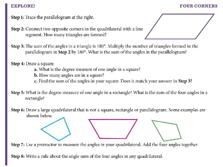 Vocabulary � Quadrilateral: A polygon with four sides.