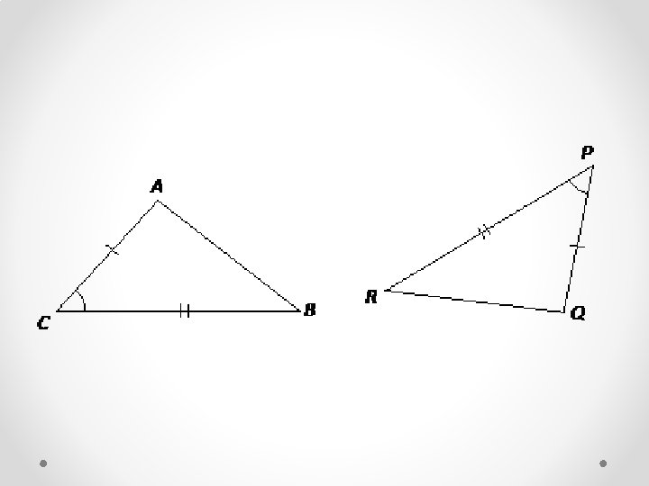 1. SSS: if the lengths of the sides in one triangle are equal to the lengths of the sides in a second triangle, the triangles are congruent. We call this condition side-side (SSS).