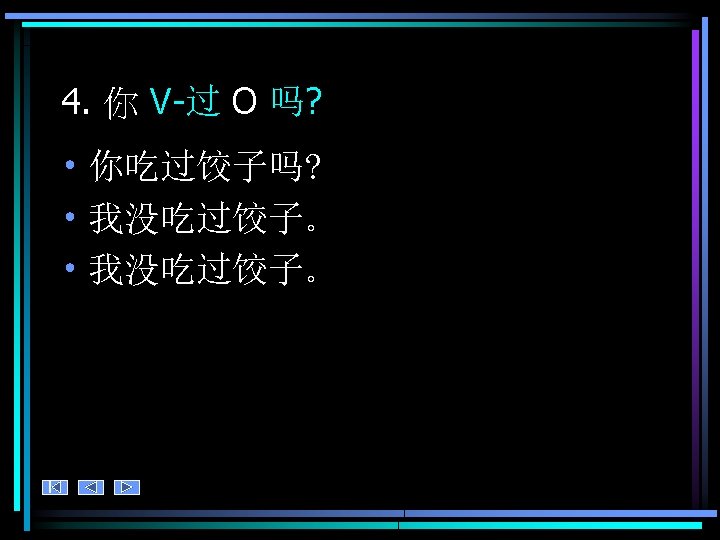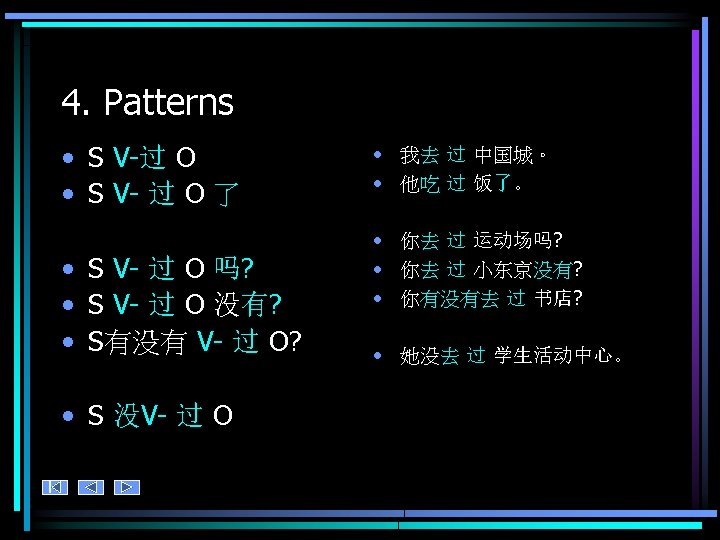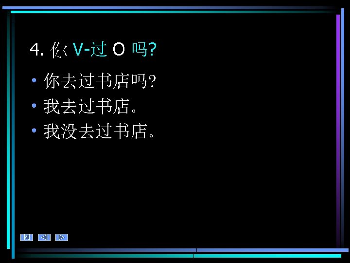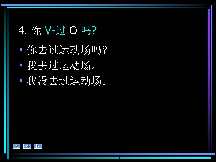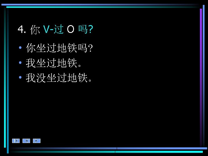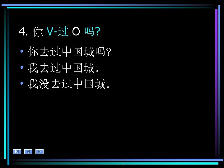 4. 练习 • Ask your partner about your past experiences. Who has led the richest, most interesting life so far? • 你 V-过O 吗?