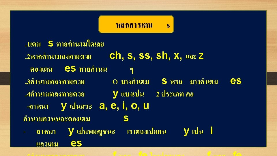 Exercise 4 เตมกรยาในรป 5. (study) 6. (walk) 7. (play) 8. (finish) Present simple ในประโยค He ______ English and Japanese. You ______ fast. I ______ football and basketball. He ______ his homework quickly.