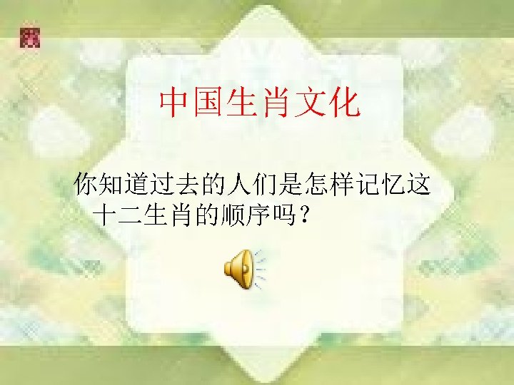 Lesson 20 What Year Is It Jiangyong Lamu Slides: 26 Download presentation Lesson 20 What Year Is It? -- Jiangyong Lamu 昌都市第一小学 Words review(ordinal numeral): • • • first 第一 second 第二 third 第三 fourth 第四 fifth 第五 sixth 第六 seventh 第七 eighth 第八 ninth 第九 tenth 第十 eleventh 第十一 twelfth 第十二 rat ox tiger rabbit dragon snake horse sheep monkey rooster dog pig rat ox tiger rabbit dragon snake How many animals are there? Let’s see … horse sheep monkey rooster dog pig first second third fifth sixth seventh ninth tenth eleventh fourth eighth twelfth What is your year? My year is the year of the___. What is his year? His year is the year of the monkey. What is her year? Her year is the year of the sheep. rat ox tiger rabbit dragon snake 猪 蛇 羊 猴 虎 鸡 牛 狗 鼠 马 兔 龙 horse sheep monkey rooster dog pig 练习(practice) A: What’s your year? B: My year is the year of the _______. A: What’s your mother’s year? B: My mother’s year is the year of the _______. A: What’s your father’s year? B: My father’s year is the year of the_______.