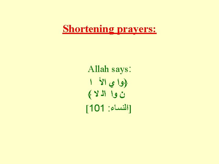 This means: “And when you (Muslims) travel in the land, there is no sin on you if you shorten your Salah (prayer). ” (An-Nisa’: 101)