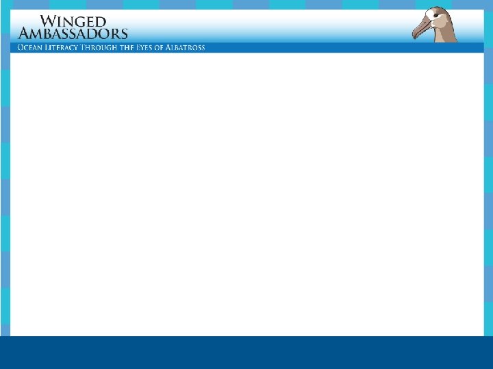 Lesson 4 Presentation Content Engage – Albatross Chicks Explain - Class Data Comparisons 1. Meeting at the Colony 2. Albatross Mating Dance 3. Laying and Incubating a Single Egg 4. Hatching to Fledging 5. Foraging Far Away to Feed the Chick 6. Feeding the Chick 7. Learning to Fly and Fledging 8. Albatross Chicks Regurgitate a Bolus 9. Video of Albatross Chick Regurgitating a Bolus 10. Extension: Video of an Albatross Necropsy 1. 2. 3. 4. 5. 6. Explore – Albatross Boluses 1. 2. 3. 4. 5. 6. 7. 8. 9. Boluses are Collected and Cleaned Bolus Shapes and Sizes Bolus Measurements Bolus Categories Student Analysis Close up of a Squid Beak Quantifying the Composition of Boluses Describing the Fragments in the Boluses Mystery Item Comparing the Bolus Data – 2 Species Comparing the Bolus Data – 2 Colonies Kure Atoll and Tern Island Data Analysis – From Scientists (Bolus Mass) Data Analysis – From Scientists (Proportion Plastic) Data Analysis – From Scientists (Proportion Beaks) Elaborate – Marine Debris 1. 2. 3. 4. 5. 6. 7. 8. Map of the Major Ocean Currents Map of Wind Speed and Direction The Wind Pushes the Ocean Water The Wind Concentrated Floating Material Currents where Pacific Albatrosses Live Albatross Encounter These Concentrations Distinguishing Food and Trash can be Difficult Extension: Running the OSCURS Model Online