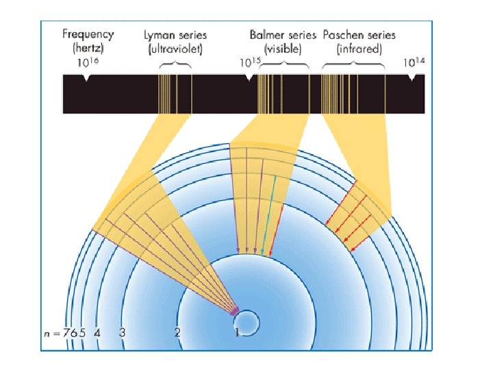Light from a helium lamp produces discrete lines. Screen Slit Helium lamp Prism
