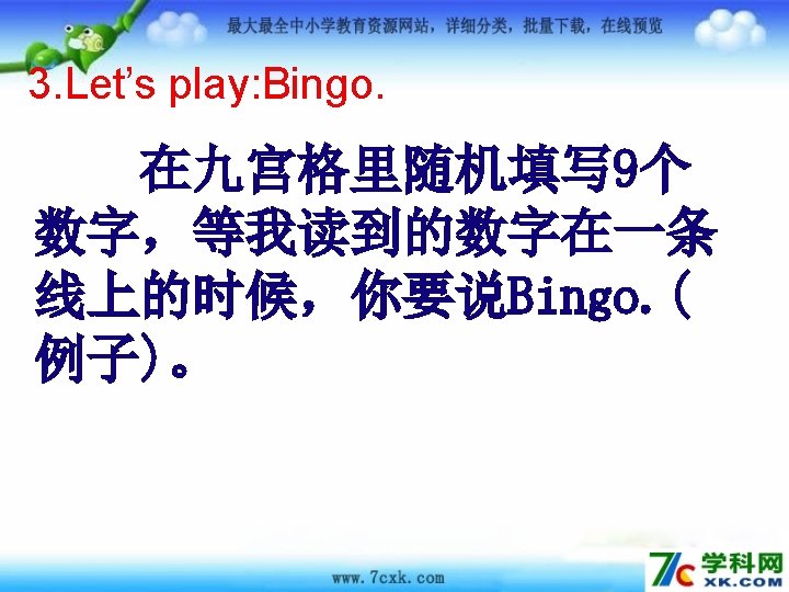 3. Let’s play: Bingo. One Five Eight Two Seven Six Nine Three Four