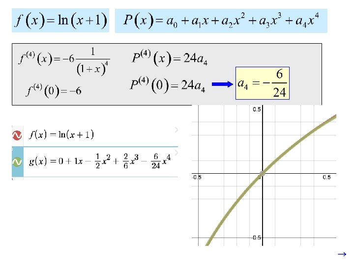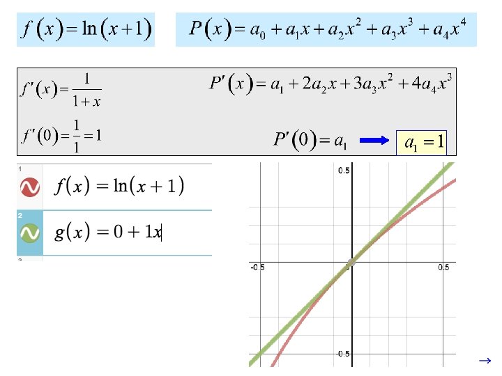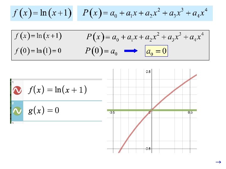We are going to start by making two assumptions: (a) Let’s assume that the function y = f(x) does in fact have a power series representation about x = a (in this case, f(x) = ln(x + 1) at x = 0 ) (b) Next we will assume that the function y = f(x) has derivatives of every order and that we can in fact find them all