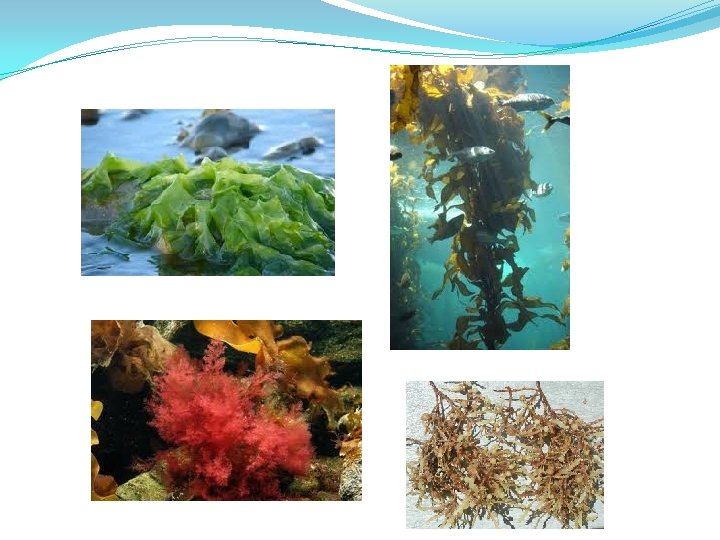 Algae Structure: No roots, stems, or leaves Thallus: entire body Blade: “leaves” photosynthesize Stipe: “stem” but does not transport nutrients Holdfast: “roots” but does not absorb nutrients Float: filled with air/gas