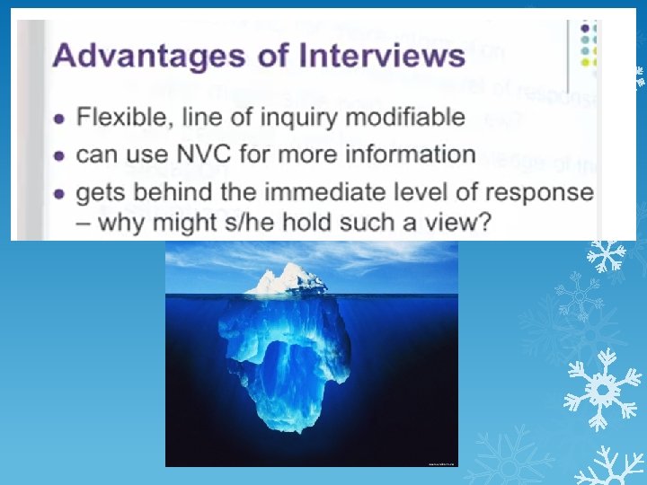 Different stances taken by the interviewer Non-Directive style of interviewing The interviewer should adopt a neutral role and avoid any commentary on the answers respondents give, to avoid affecting the answers to later questions. Would there be any advantages in using a more assertive, aggressive style of interviewing such as the style sometimes seen on news programmes? https: //youtu. be/Uwlsd 8 RAoq. I? t=2 m 36 s