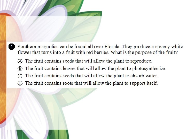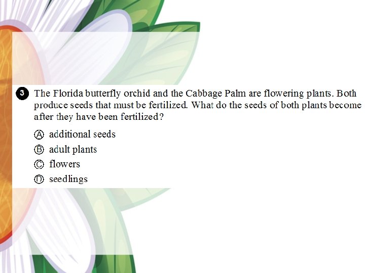 Life Cycle of a Flowering Plant Big Idea 14: Organization and Development of Living Organisms • SC. 3. L. 14. 1 - Describe structures in plants and their roles in food production, support, water and nutrient transport, and reproduction. • SC. 4. L. 16. 1 - Identify processes of sexual reproduction in flowering plants, including pollination, fertilization (seed production), seed dispersal, and germination. (Assessed as SC. 3. L. 14. 1. ) Department of Mathematics and Science