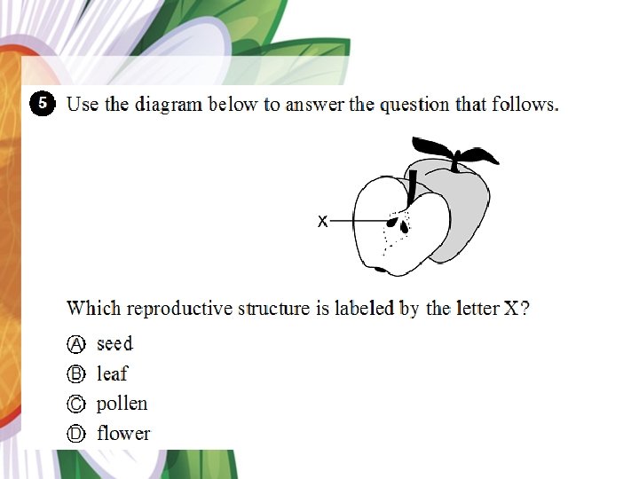 The Parts of a Flower 2. 3. 5. 1. • Sepals protect the bud until it opens. • Petals attract insects. • Stamens make pollen. • Pistil contain the ovary 4. which contains the ovules (eggs). • When fertilized, ovules grow into fruits which contain seed. Department of Mathematics and Science