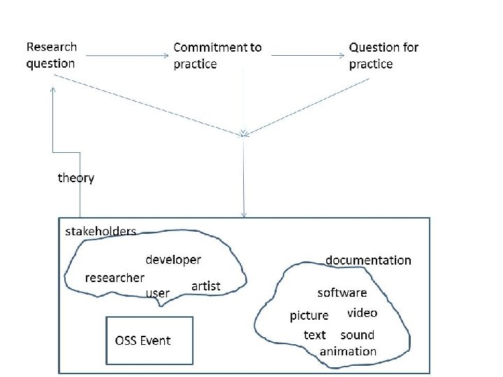Results • Our results suggest a model based on: 1) a stakeholder – model for Science in Society Open Source Software events where stakeholders are artists, developers, researchers, and citizens; 2) a open documentation model for open source software events where documentation consists of a patchwork of words, still and moving images, music and sound, and digital code.