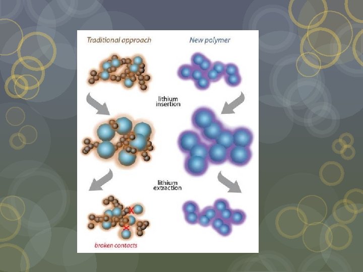 Na. CI çözeltisinde Na+ ve CI- iyonlarının elektrik potansiyeli altında zıt elektrotlara göçü ile elektrik iletilir. Ortamdaki çözücü moleküllerin çözünen iki iyonu solvatize etme yeteneğine bağlı olarak iyonların birbirinden ayrılması kolaylaşır. Genelde iyonik iletkenlik gösteren polimerlerin yapısında elektron verici bir grup bulunmaktadır. Polimerin yapısında yer alan bu gruplar tuzun katyonik bileşiği ile zayıf bağlar oluştururlar. Böylece polimer, tuzun her iki iyonunu veya birini solvatize eder. İyonlar birbirinden yeterince uzaklaşmadığı sürece iyon çifti olarak kalmayı tercih edeceklerinden yük taşıyıcı olarak görev yapmayacaklardır. Lityum-İyon pilleri