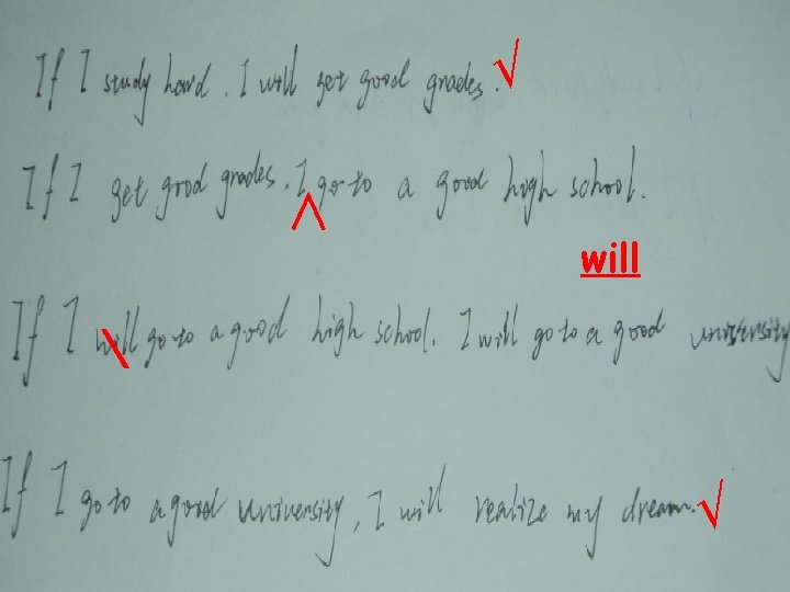 Ⅲ. Correcting 改错 1. If I get up late tomorrow, I miss ___ the school bus. will miss ____ get enough exercise, she won’t be strong. 2. If she won’t doesn’t ___ rain, she will go to the park. 3. If it isn’t doesn’t
