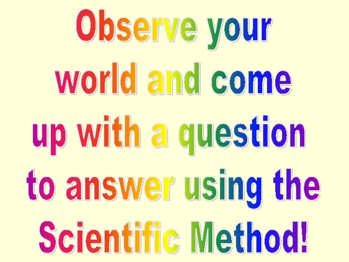 Steps of the Scientific Method 2. Observation/ Research: • use your five senses • find facts (google, library books etc. )