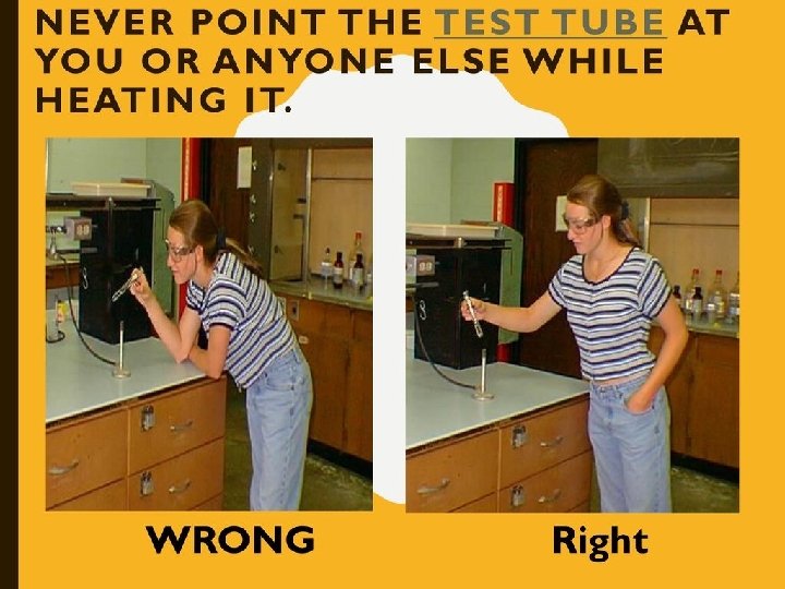 Other Safety Concerns… Exercise extreme caution when using a gas burner. Take care that hair, clothing and hands are a safe distance from the flame at all times. Never put any substance into the flame unless specifically instructed to do so. Never reach over an exposed flame. Light gas burners only as instructed by the teacher.