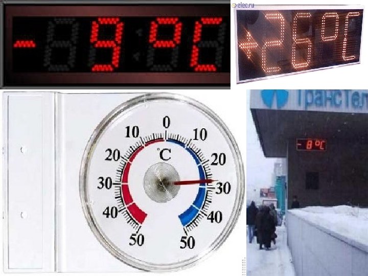Temperature: • +10: It is 10 (degrees) above zero. • -10: It is 10 (degrees) below zero / It is 10 degrees of frost. • It is zero.