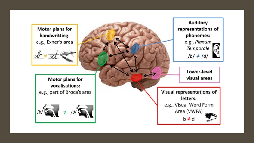 L’area per la forma visiva delle parole Questa zona, situata nella corteccia visiva, è specializzata nel riconoscimento automatico della forma delle lettere e delle parole. La sua sensibilità varia molto in base al grado di familiarità che abbiamo con esse, tanto che analizzandone l’attività elettrica è possibile capire se un soggetto sia o meno madrelingua anche mentre legge in silenzio, senza neanche il bisogno di ascoltarlo parlare. I nostri neuroni rispondono in modo diverso quando leggiamo parole reali o parole senza senso. Una specifica area del nostro cervello, chiamata area per la forma visiva delle parole, infatti, è responsabile per il riconoscimento delle parole nel loro intero, non lettere o sillabe. Questa zona è situata nel lato sinistro della corteccia visiva, il lato opposto dell’area fusiforme delle facce. Questa ci permette di riconoscere le persone familiari, l’altra di riconoscere le parole. Non importa il suono di una parola, o le singole lettere che la compongono, quanto piuttosto come le singole lettere appaiono nel loro insieme. Questa nuova scoperta ci permette non solo di vedere come il cervello rielabora le parole, ma fornisce anche un aiuto persone con problemi nella lettura: imparare la forma visiva di una parola come fosse un oggetto aiuta individui con questo tipo di disabilità a leggere.
