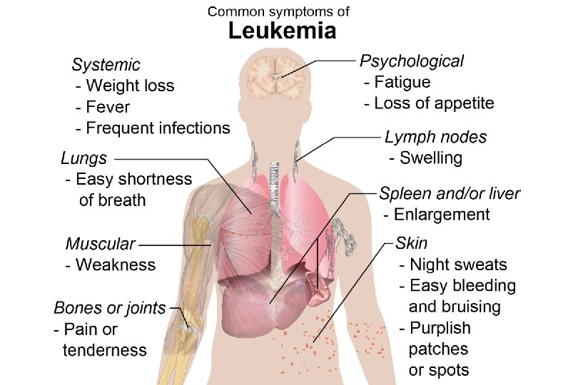 • may be chronic (usually adults) or acute (children) • treated with: § Radiation § Chemotherapy § Bone marrow transplants