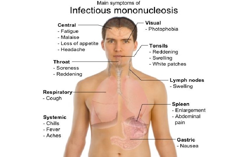 Mononucleosis • • highly contagious virus usually in children and young adults no cure - usually lasts a few weeks large amounts of abnormal monocytes and lymphocytes