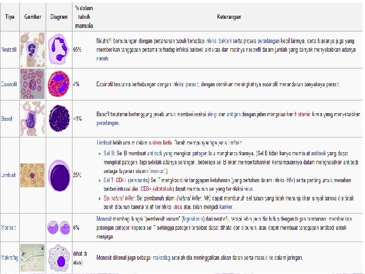 a. Mieloblas yang akhirnya berkembang menjadi leukosit granular (granulosit) yaitu eosinofil, neutrofil, dan basofil. b. Monoblas berkembang menjadi monosit. c. Limfoblas akan berkembang menjadi limfosit.