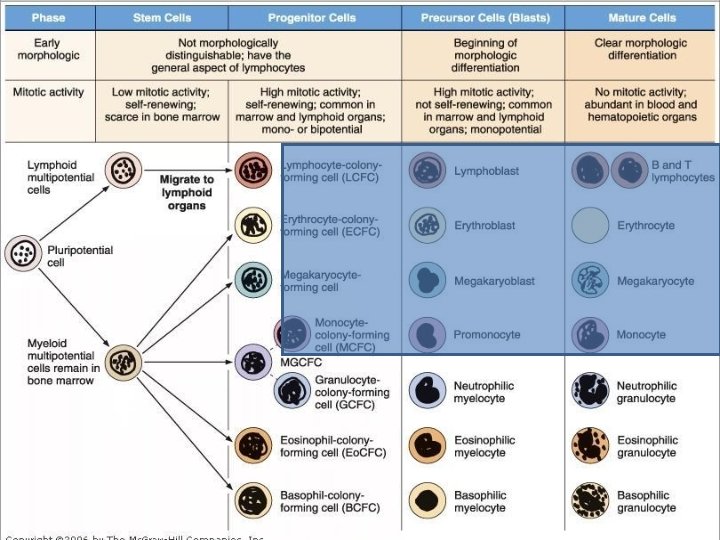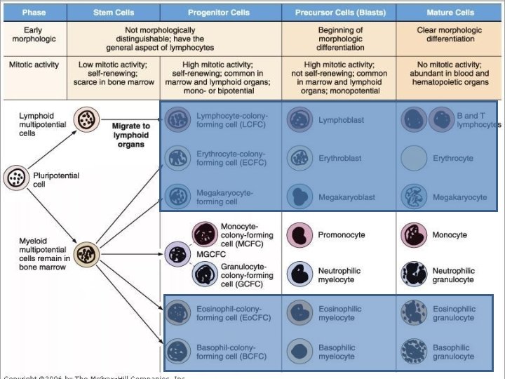 LYMPHOPOIESIS • CFU-Ly membagi membentuk CFU-LYB dan CFU-LYT • CFU-LYB bermigrasi ke "lokasi bursa-setara", dibagi → B limfosit • CFU-LYT mengalami mitosis bermigrasi ke Timus → limfosit T